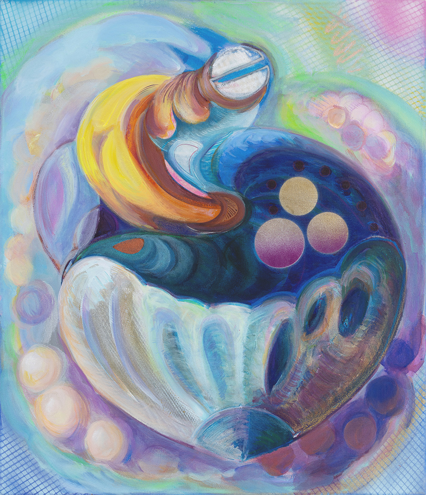 这些有关古怪、超自然战斗机器的变形绘画,似乎竭力地进入观者的空间中,并同时消解进抽象并融入背景当中。始自文艺复兴的传统技术与 VR 游戏技术的 动态视觉体验相融合。
